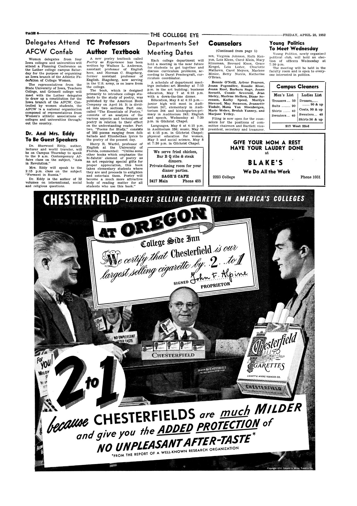 | Dr. and Mrs. Eddy to be guest speakers | In Contemporary Affairs class. |