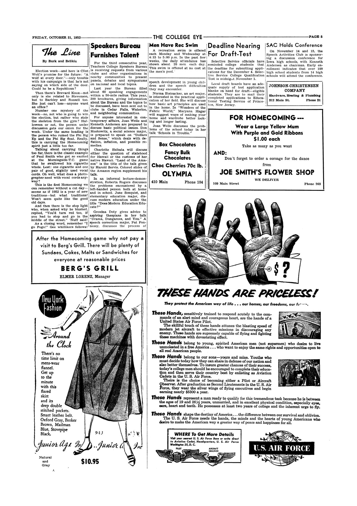 | Bureau furnishes talent | Many students participate in Speakers Bureau service now in third year of operation; list of students and their topics. |