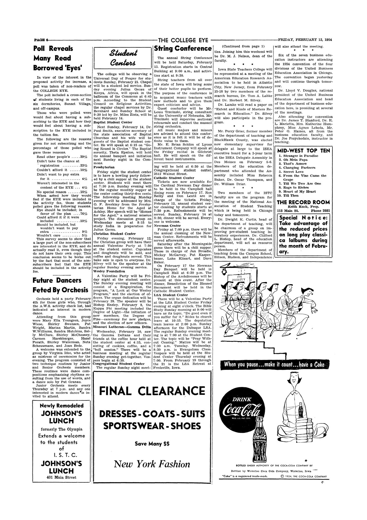 | Poll reveals many read borrowed 'Eyes' | Survey of reasons for not subscribing to the College Eye. |