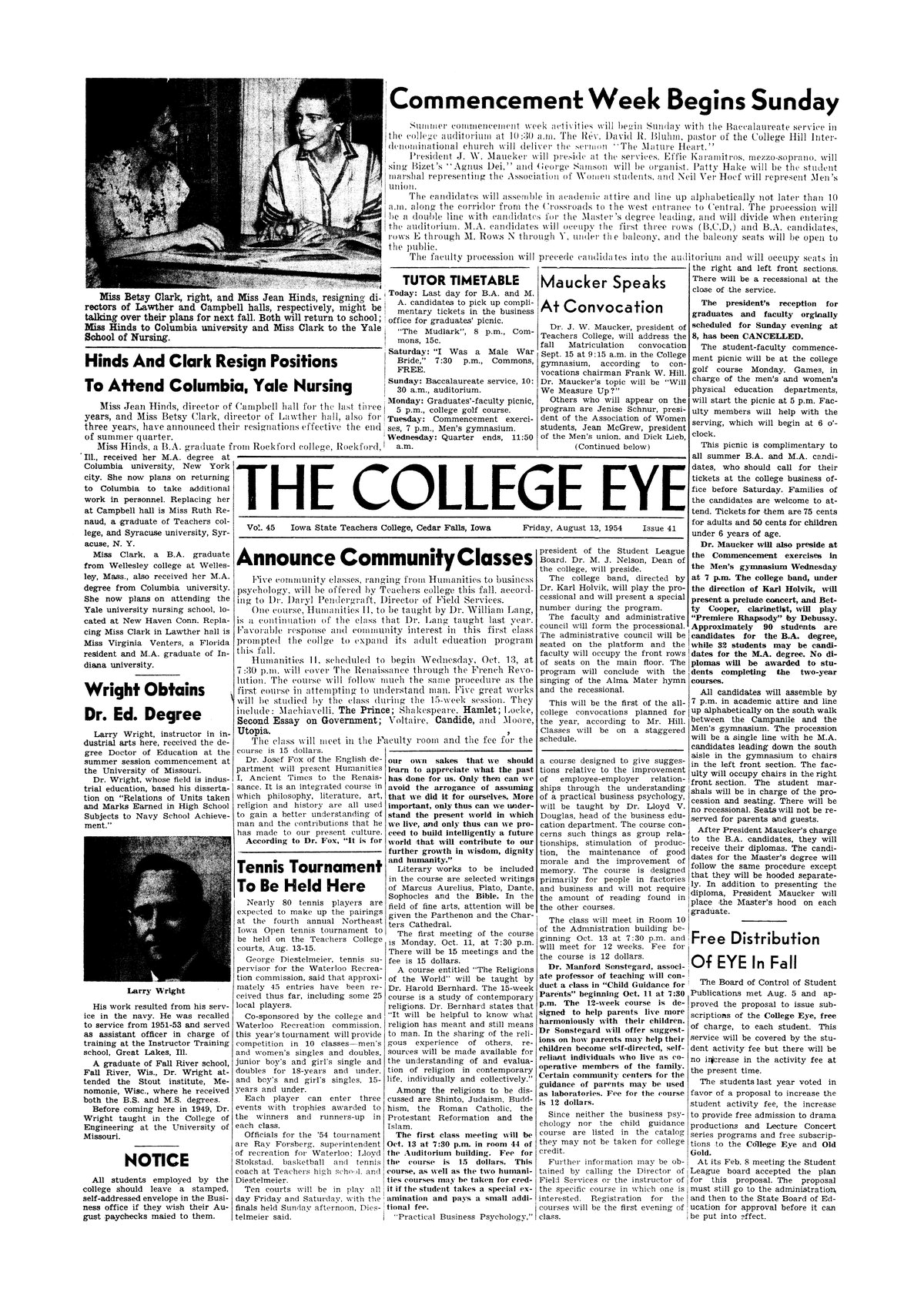 | Maucker speaks at Convocation | Will speak at fall Matriculation Convocation. |