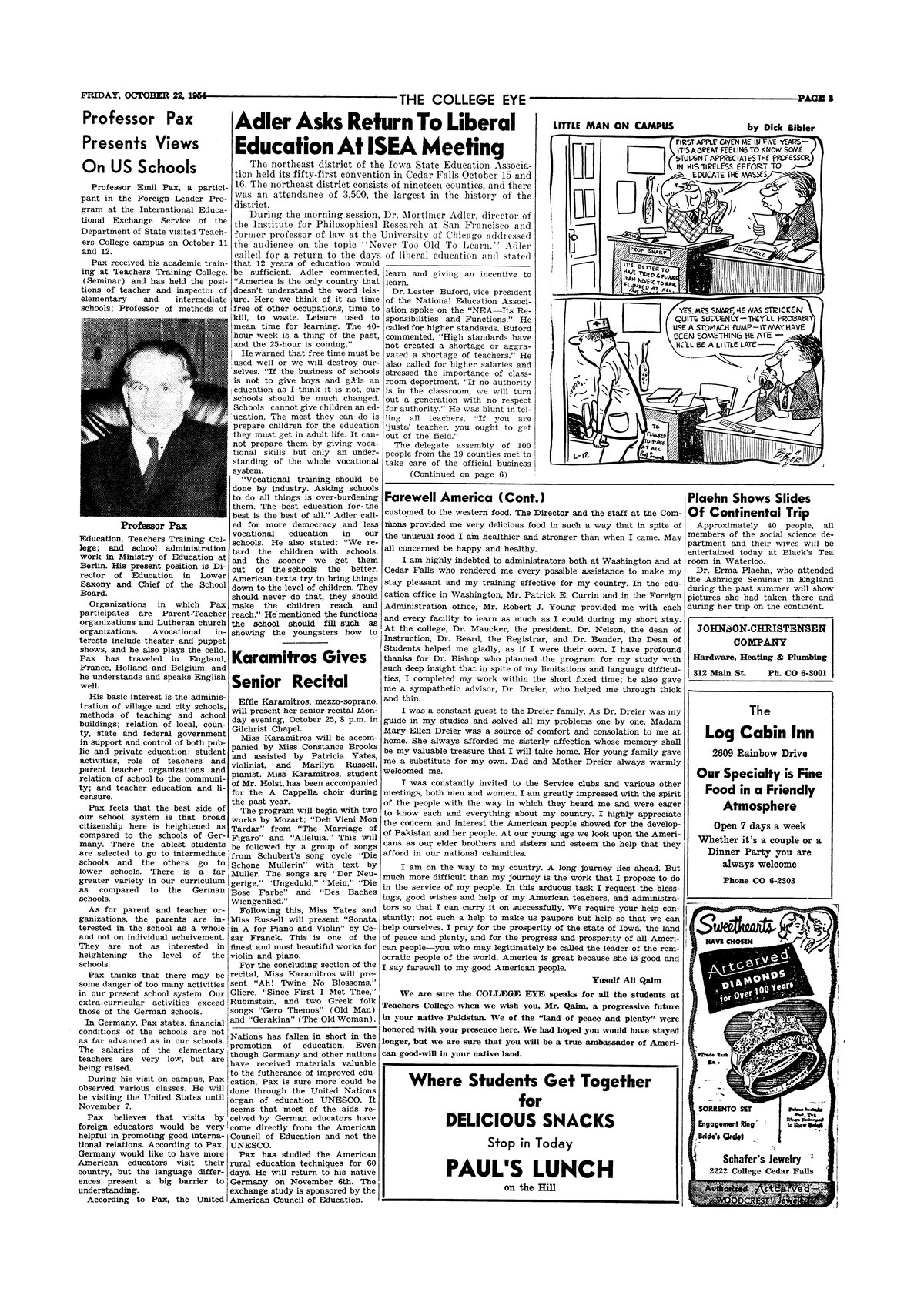 | Professor Pax presents views on US schools | |