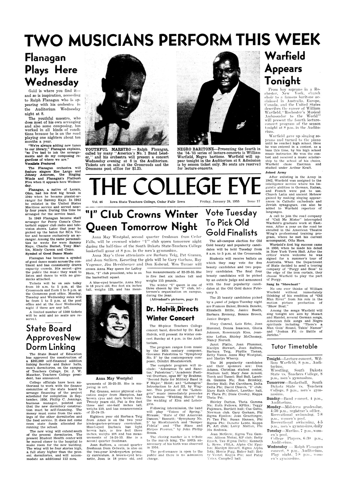 'I' Club crowns winter queen tomorrow night Profile of Queen Anna Mae Westphal and her attendants.