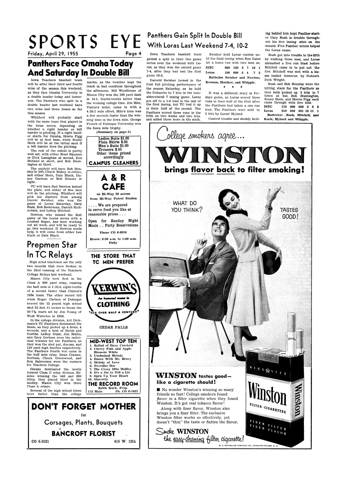 | Panthers gain split in double bill with Loras last weekend 7-4, 10-2 | Teachers lost their first game, won the second. |