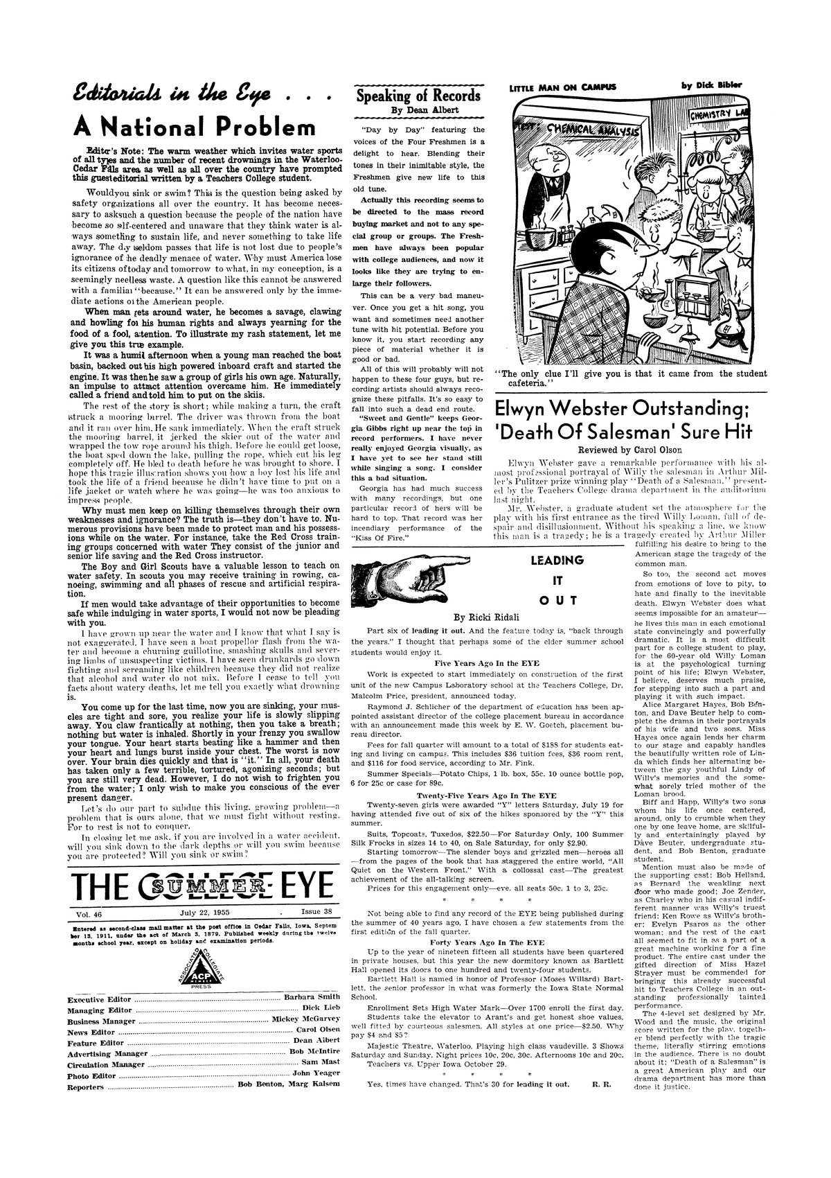 | Elwyn Webster outstanding; 'Death of Salesman' sure hit | Review of Arthur Miller's "Death of a Salesman" as produced by TC. |