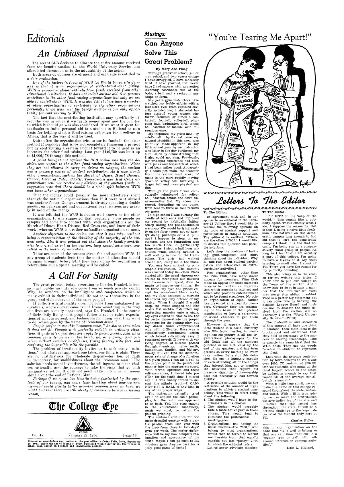 | An unbiased appraisal | Evaluates the decision to donate to the World University Service. |