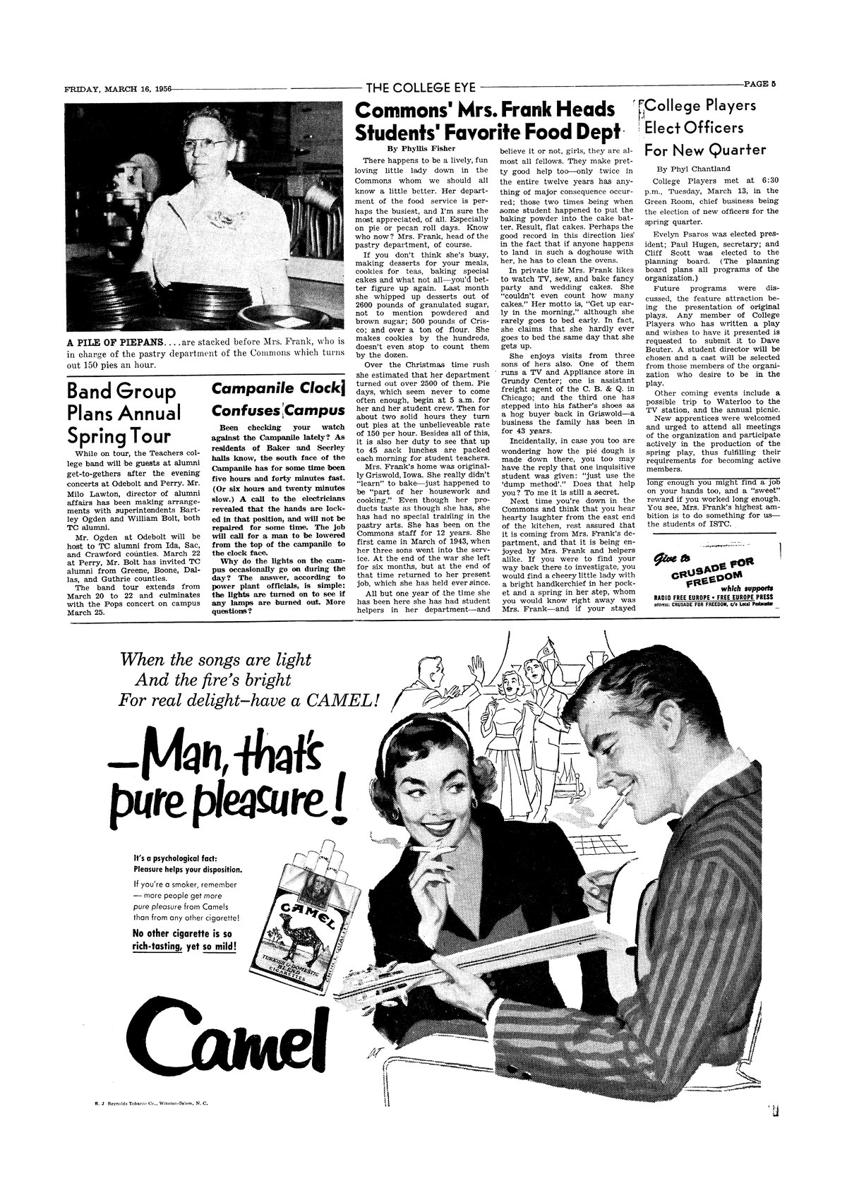 | Commons' Mrs. Frank heads students' favorite food dept. | Profile of Frederica Frank; photo. |