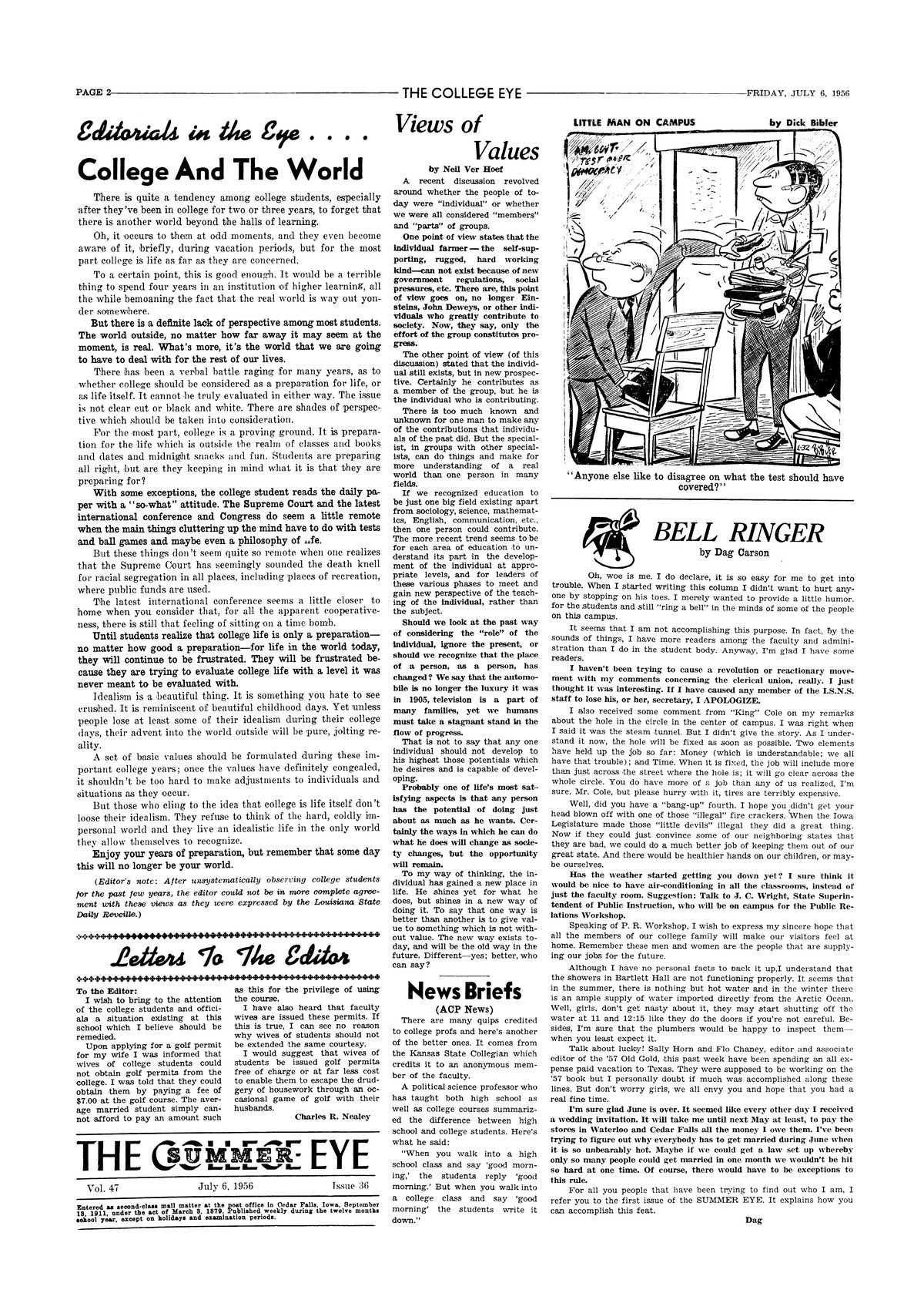 | College and the world | Reminds college students that there is a world outside TC and that they must prepare for it. |