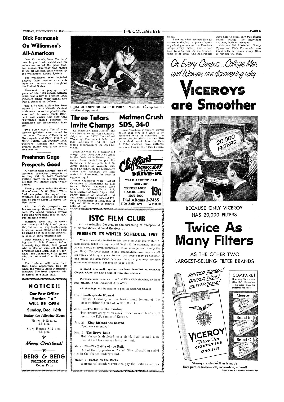 | Dick Formanek on Williamson's All-American | Dick Formanek, a TC guard, was named to the All-America team by the Williamson Rating System. |