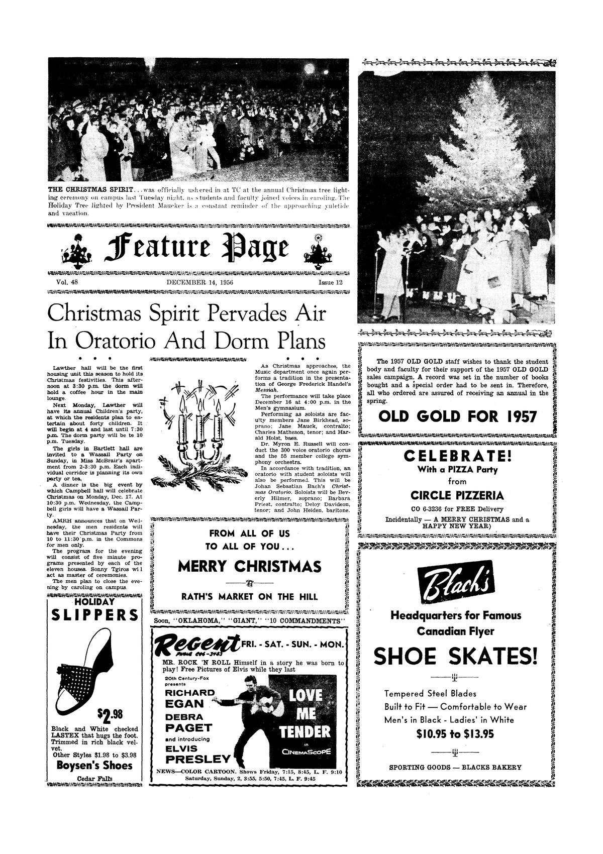 Christmas spirit pervades air in Oratorio and dorm plans A look at Christmas activities; photo.