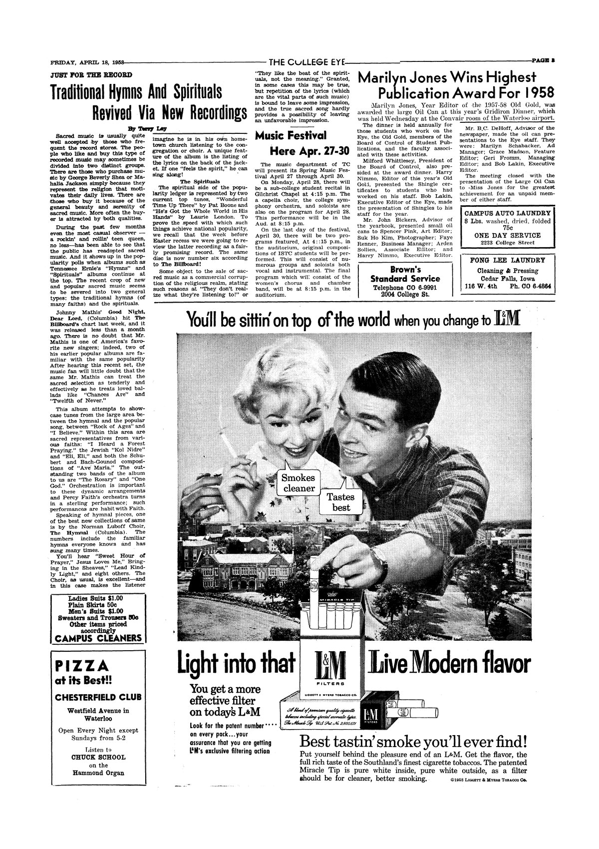 | Marilyn Jones wins highest publication award for 1958 | List of award winners from annual Gridiron Dinner. |