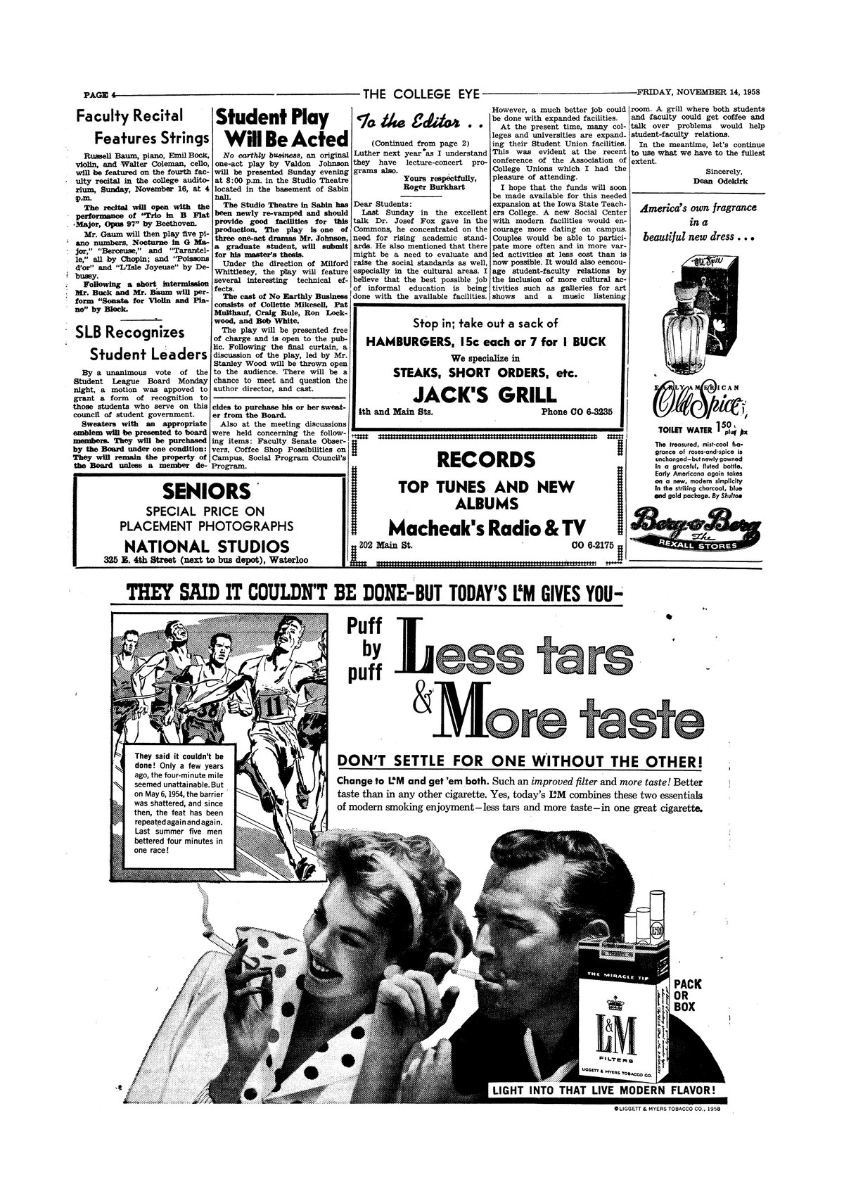 | Student play will be acted | Studio Theater will produce Val Johnson's "No Earthly Business". |