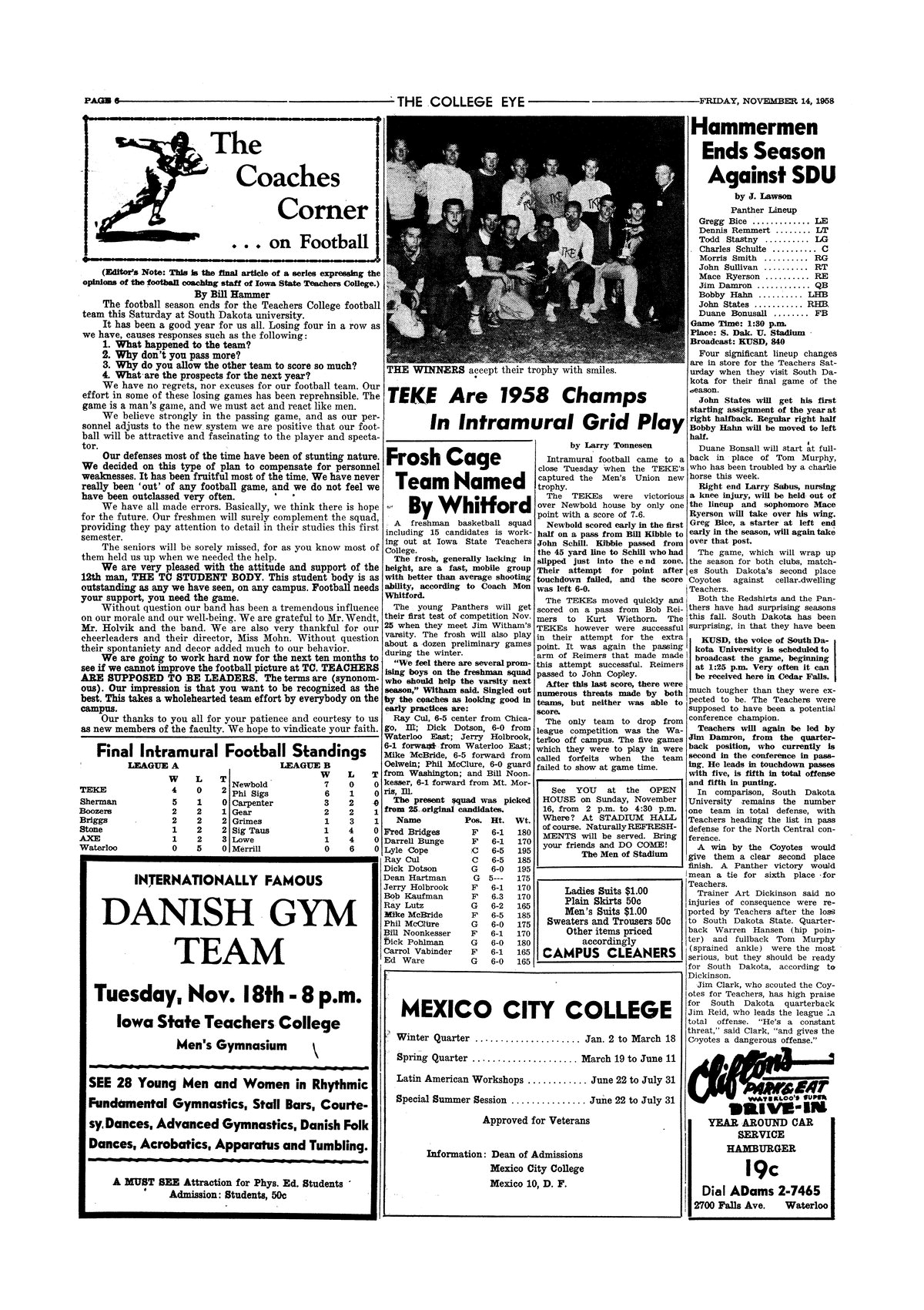 | Teke are 1958 champs in intramural grid play | The trophy was won by one point; photo. |