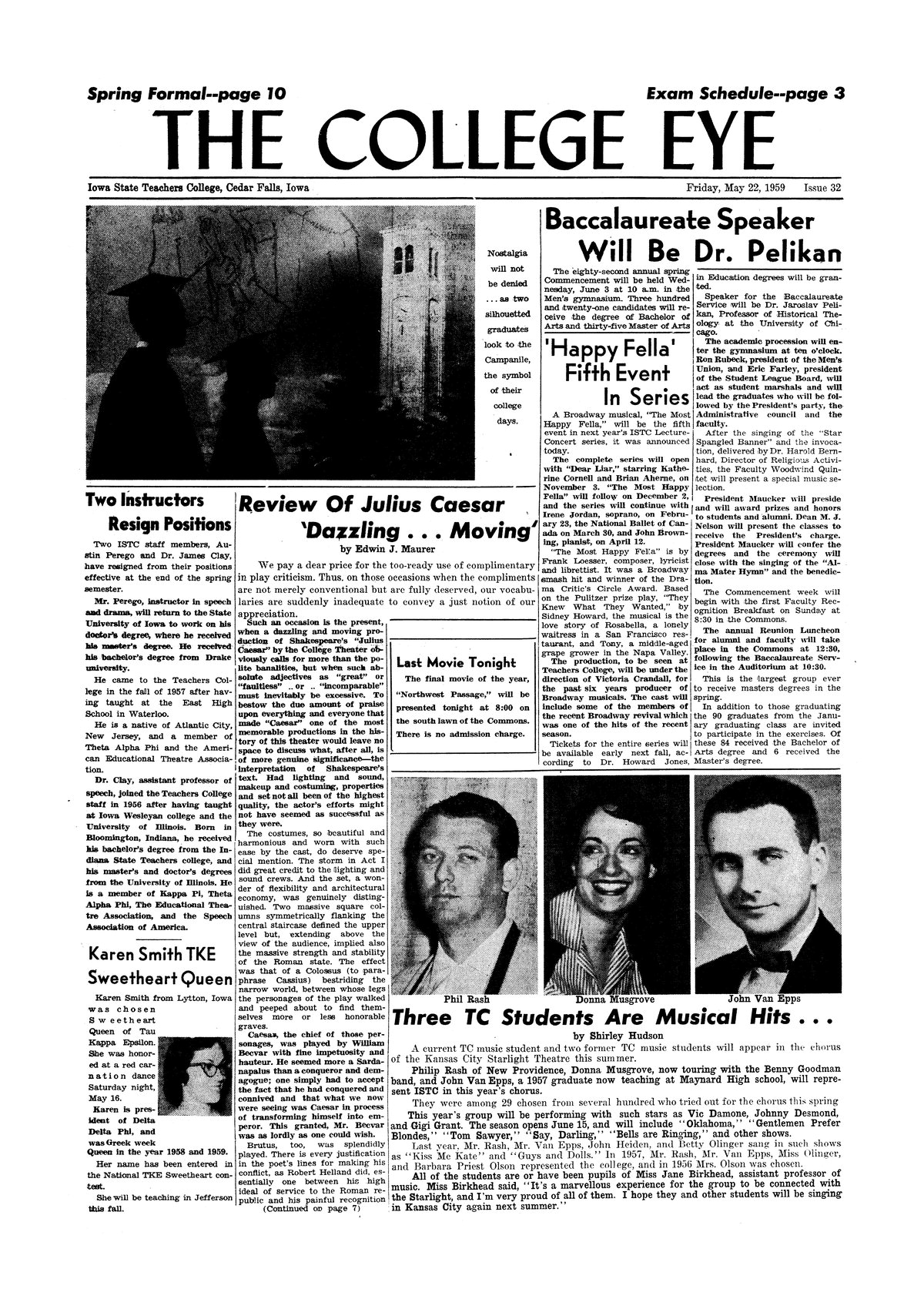 Three TC students are musical hits . . . . Phil Rash, Donna Musgrove, and John Van Epps will perform in Kansas City summer theater; photo.