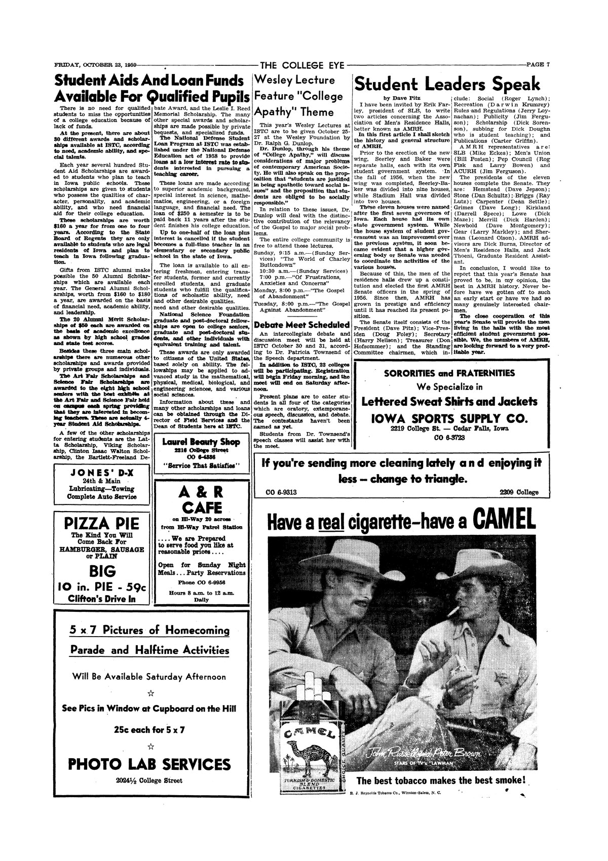 | Wesley lecture feature "College Apathy" theme | Ralph G. Dunlop will speak at Wesley Foundation. |