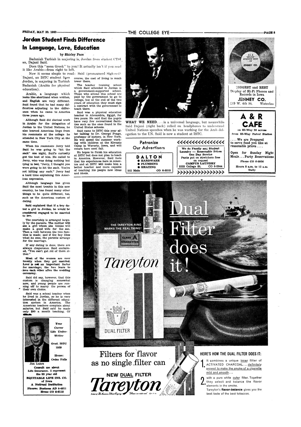 | Jordan student finds difference in language, love, education | Said Dajani gives his impressions of ISTC and the US; photo. |