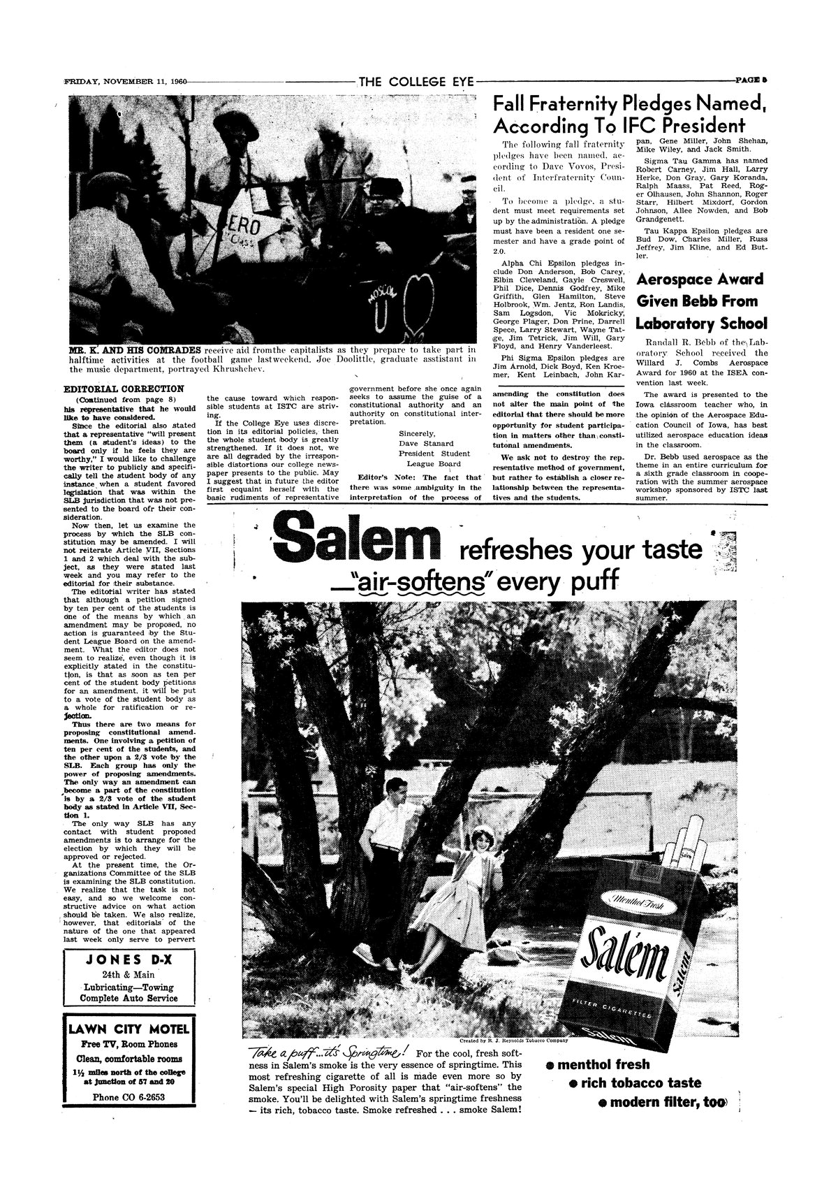 | Untitled | Students put on a show portraying Mr. Khrushchev and his comrades during halftime activities; photo. |