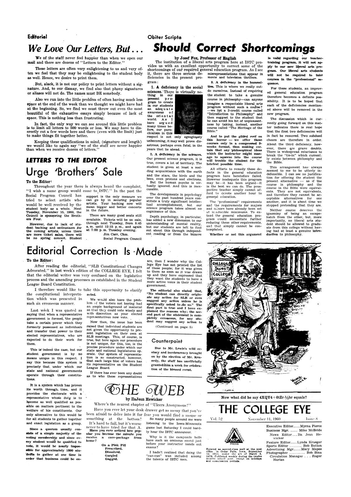 | We love our letters, but | The staff of the College Eye appreciates letters to the editor, but signature and length must be kept in mind. |
