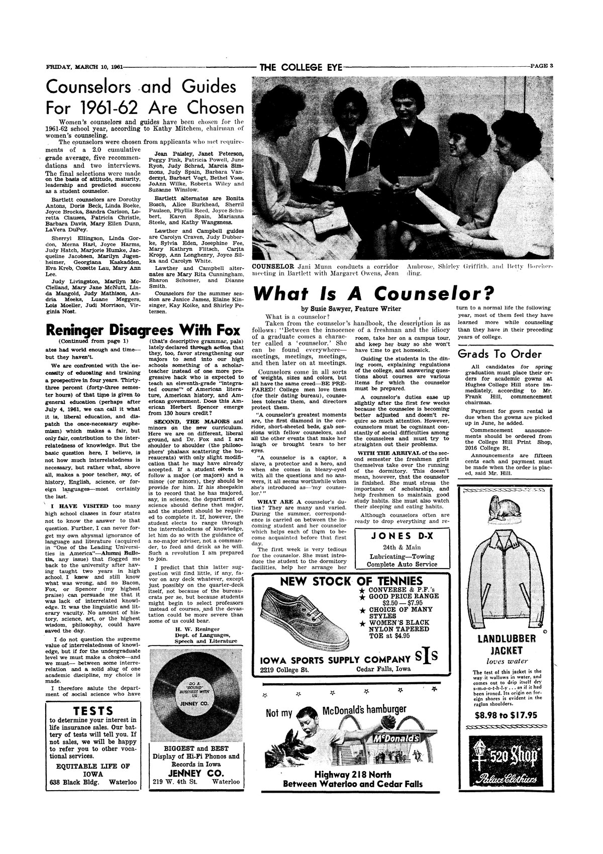 | Counselors and guides for 1961-62 are chosen | List of counselors and guides; photo. |