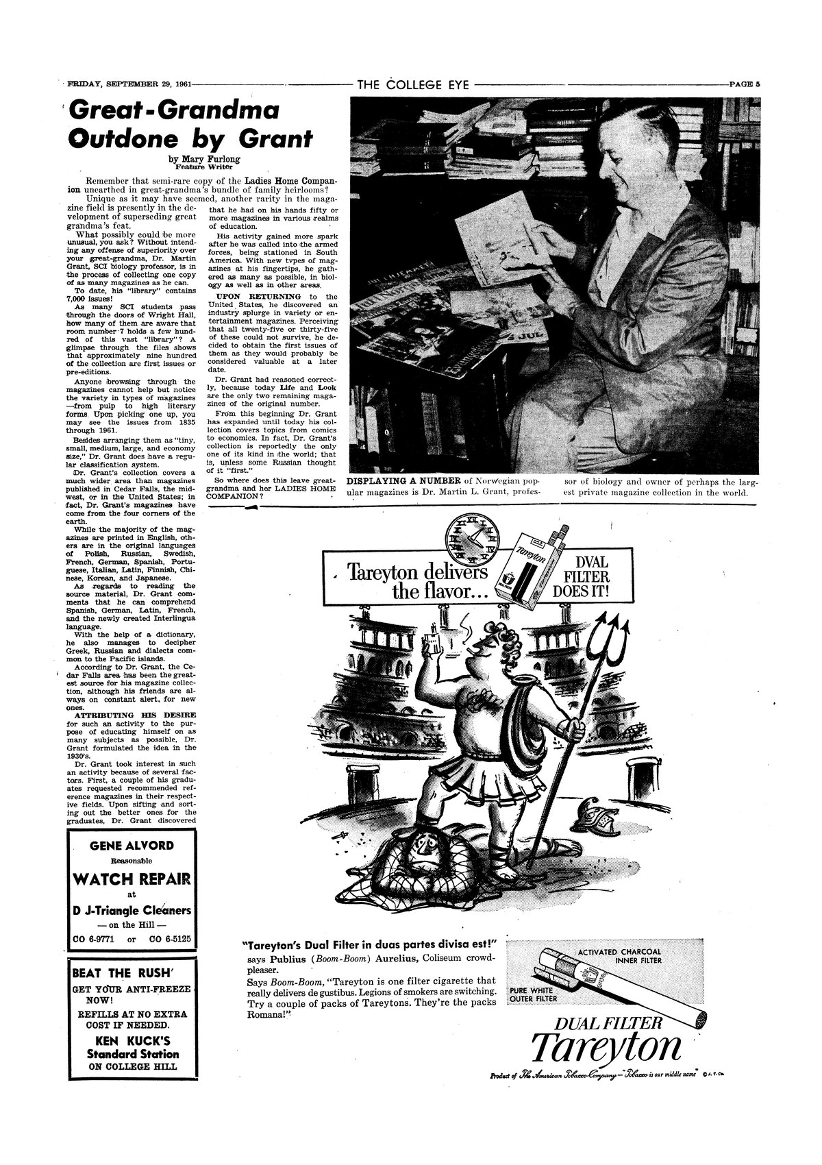 | Great-grandma outdone by Grant | A look at Professor Grant's collection of magazines; photo. |