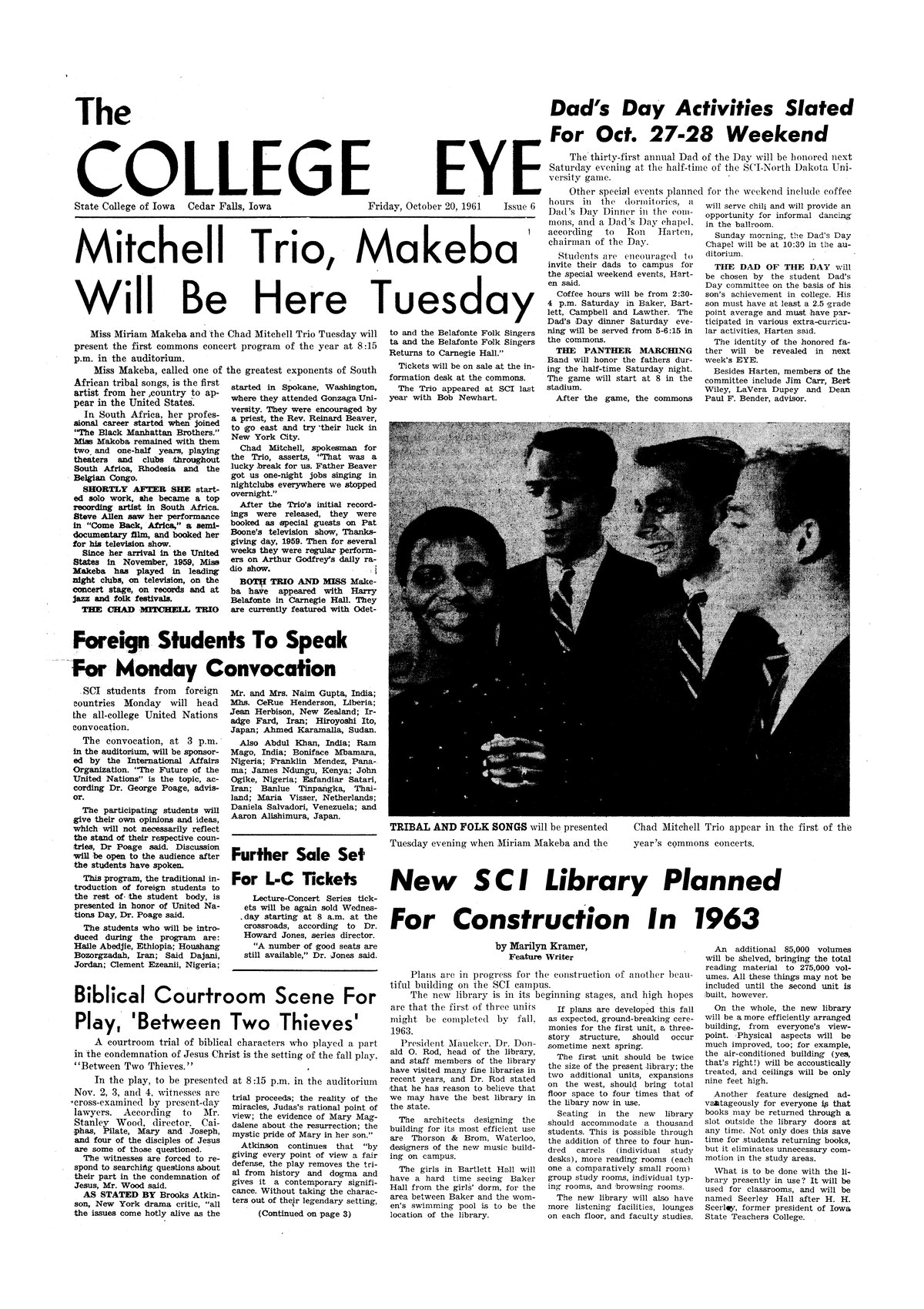 | Mitchell Trio, Makeba will be here Tuesday | Profiles of the performers. |