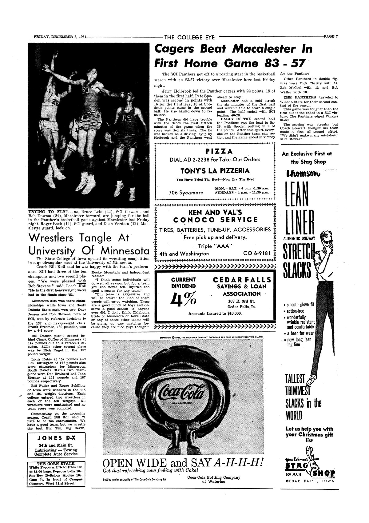Cagers beat Macalester in first home game 83-57 SCI Panthers start the basketball season with a big victory.
