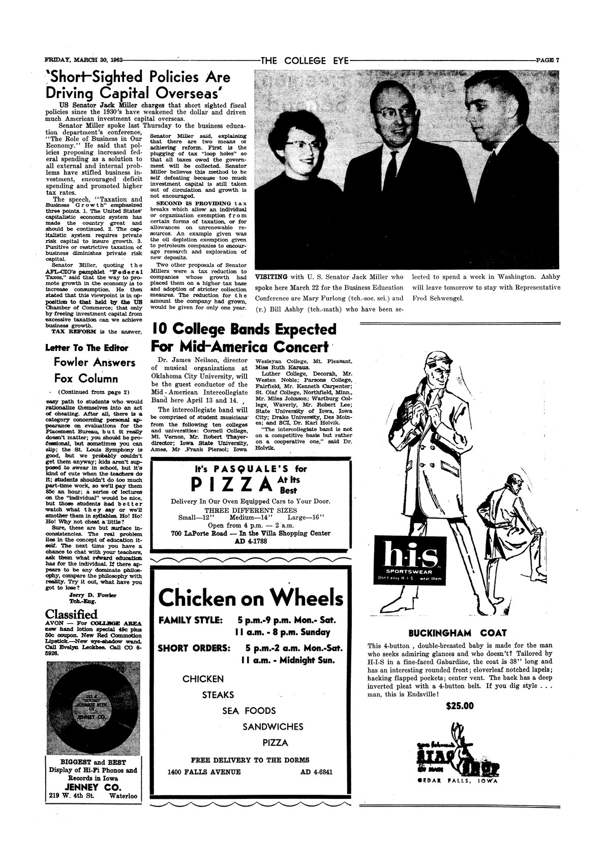 | 'Short-sighted policies are driving capital overseas' | Excerpts from remarks by Senator Jack Miller; photo. |