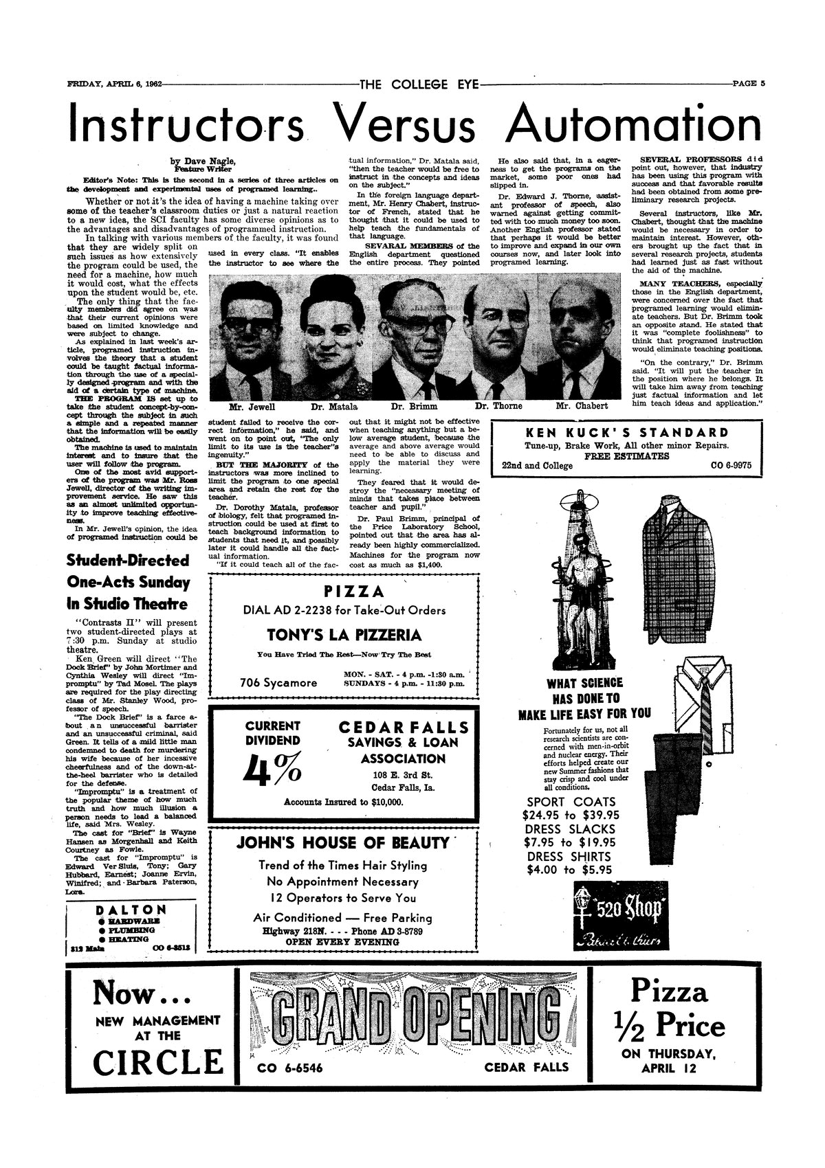 | Instructors versus automation | Professors offer opinions on programmed instruction; photo. |