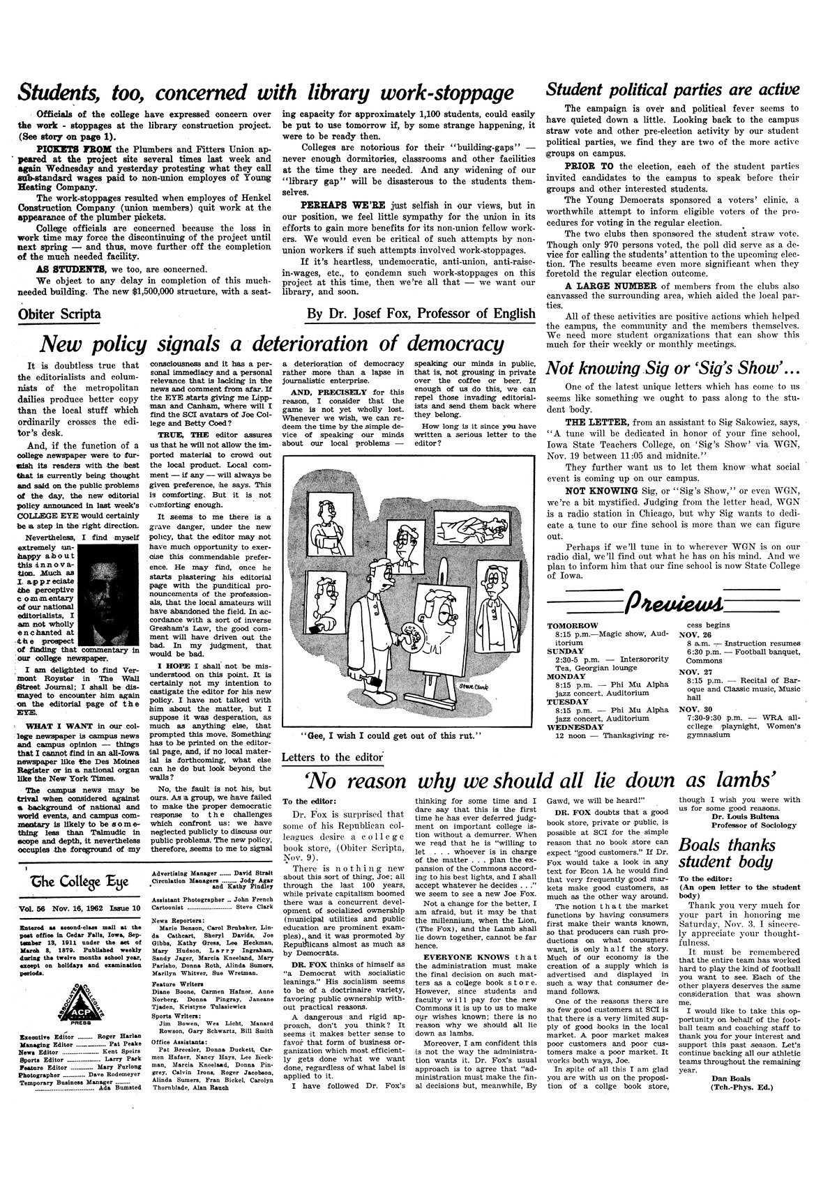 | New policy signals a deterioration of democracy | Disagreements with putting more professional writing in the EYE and less focus on staff writing. |