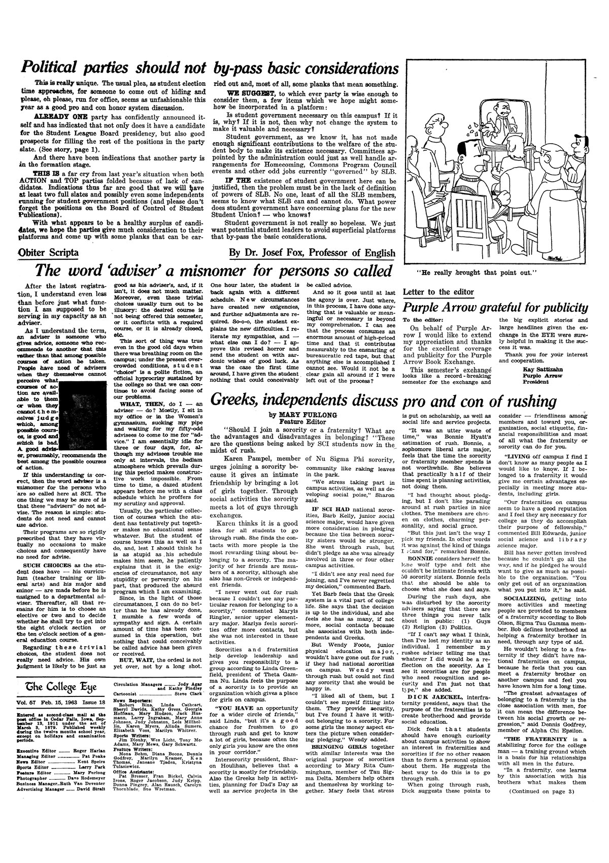 | Greeks, independents discuss pro and con of rushing | Students offer views. |