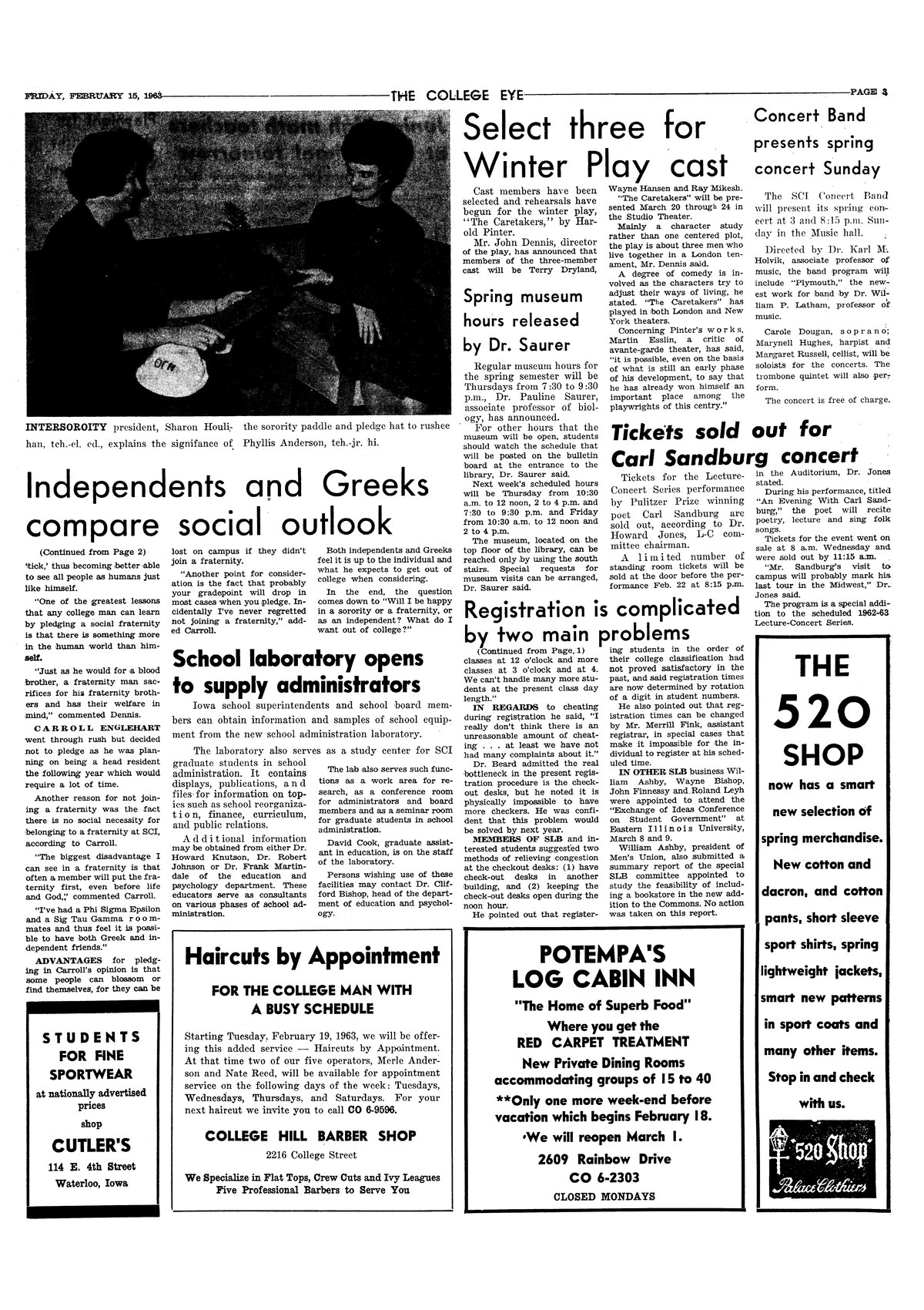| Select three for winter play cast | Will produce "The Caretaker". |