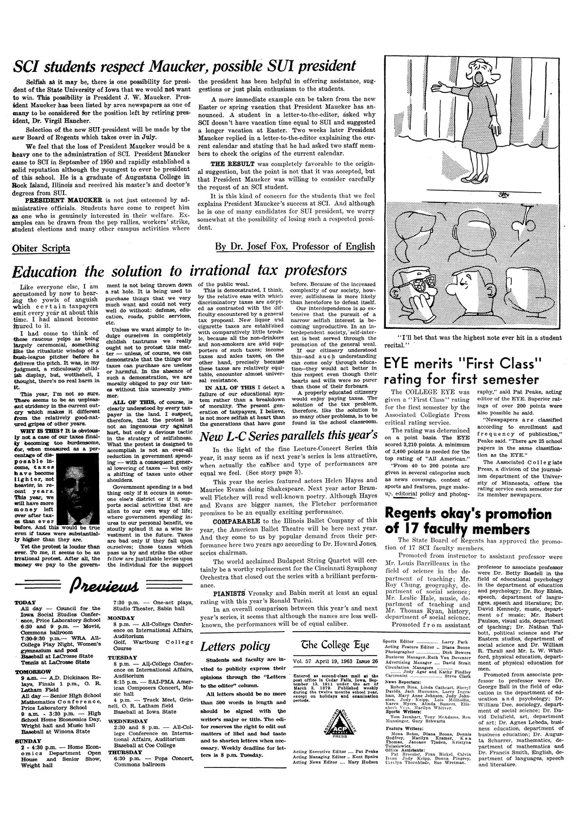 | SCI students respect Maucker, possible SUI president | Students don't want Maucker to leave; rumored to be replacement for President Hancher; cite President Maucker's achievements. |