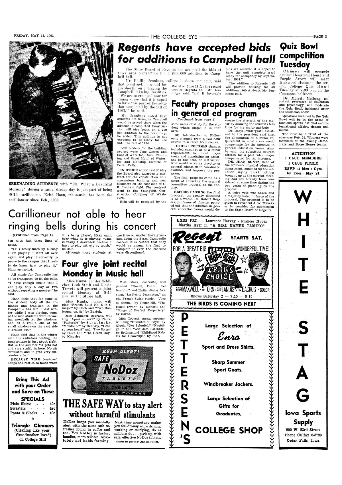 | Regents have accepted bids for additions to Campbell Hall | Will build $950,000 addition; should be complete by fall 1964. |