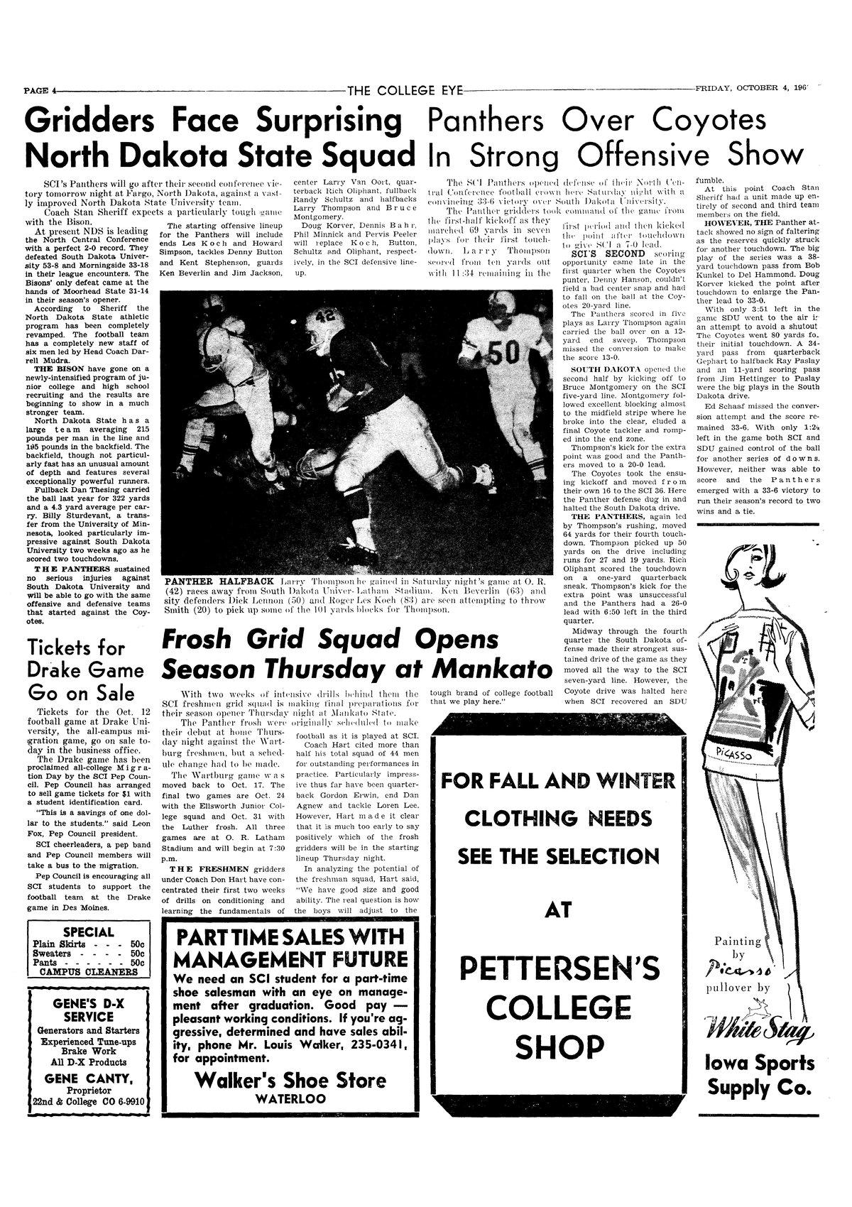 | Panthers over Coyotes in strong offensive show | SCI defeated South Dakota, 33-6; photo. |