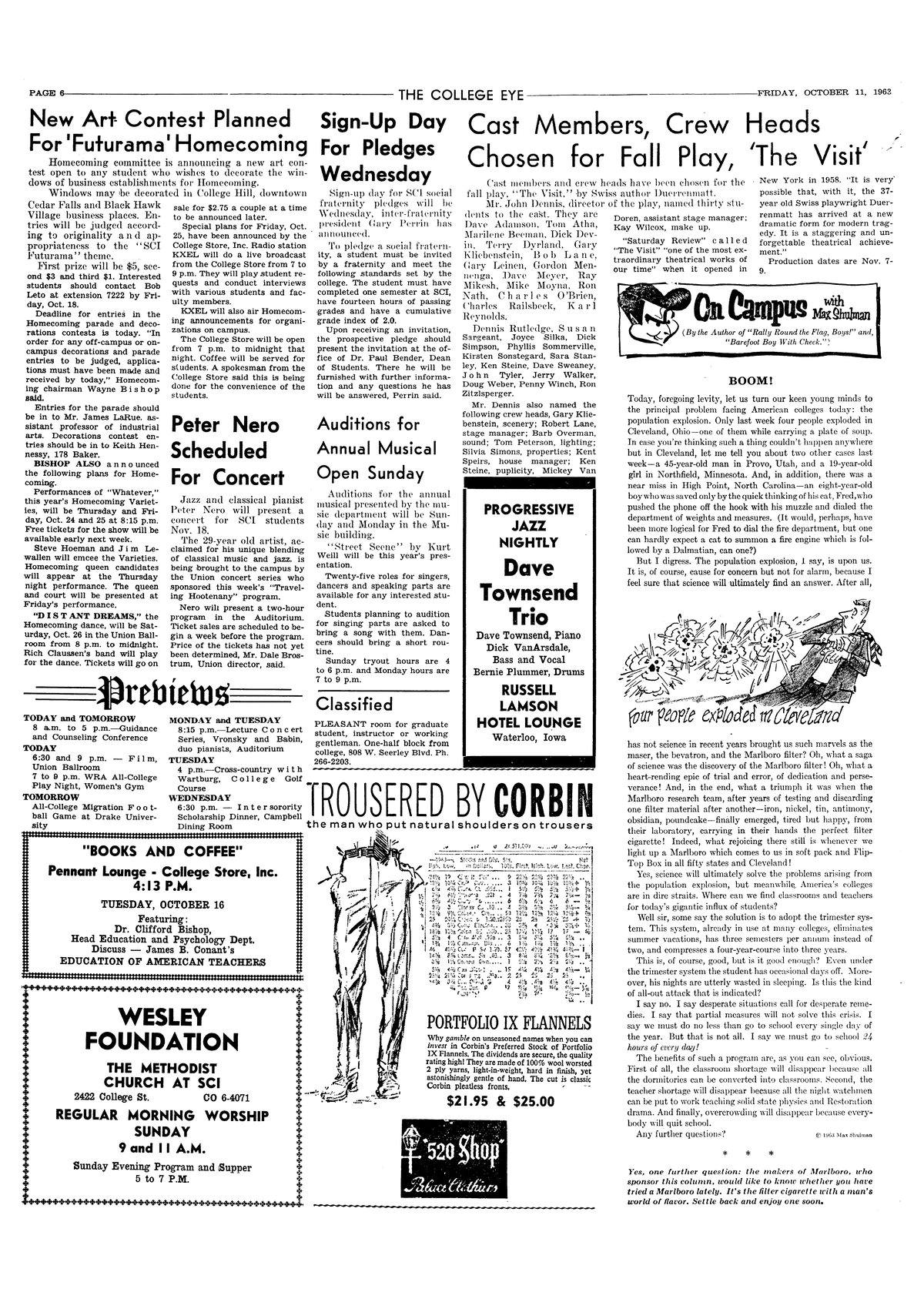 | Auditions for annual musical open Sunday | Will present "Street Scene". |