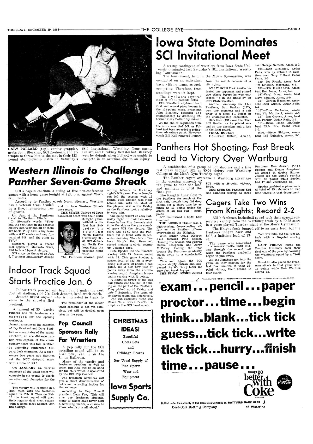 Cagers take two wins from Knights; record 2-2 SCI defeated Wartburg College, 70-58.