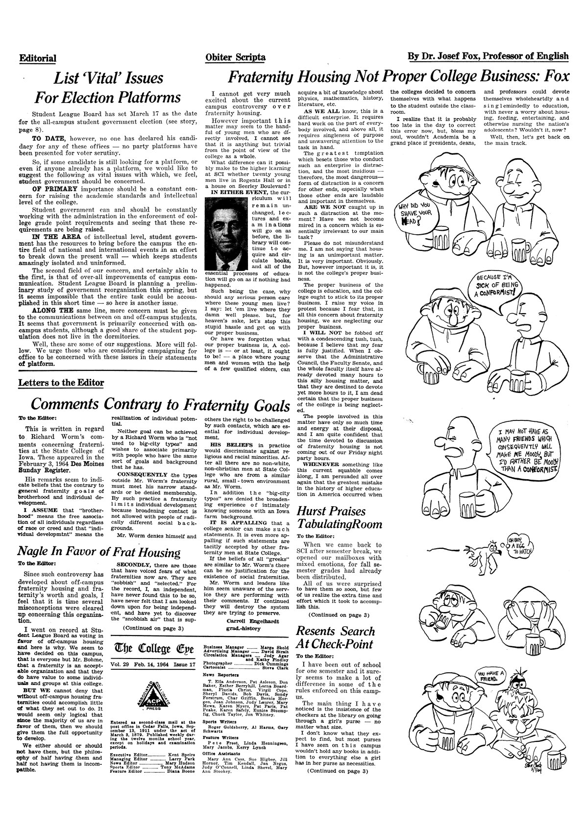 Obiter Scripta: fraternity housing not proper college business: Fox Believes that the matter of fraternity housing is trivial..