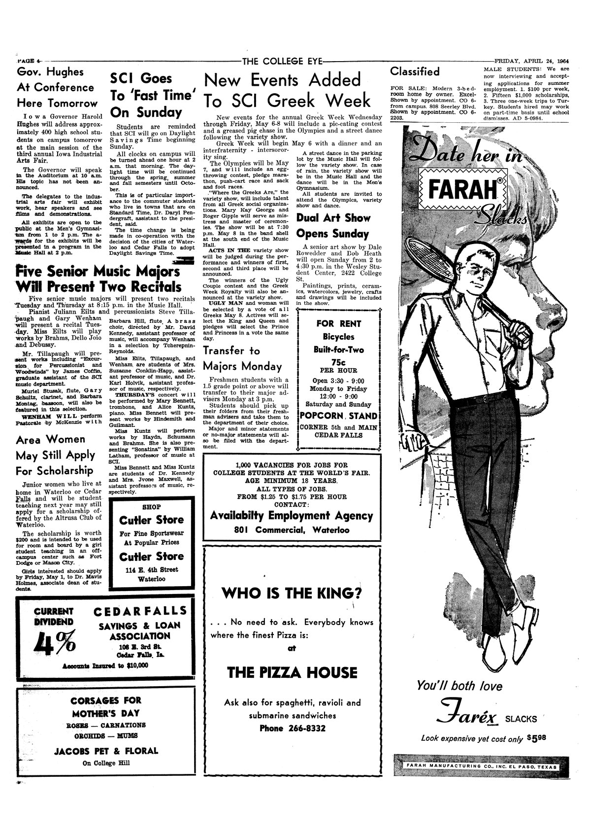 | Gov. Hughes at conference here tomorrow | Will address Industrial Arts Fair. |