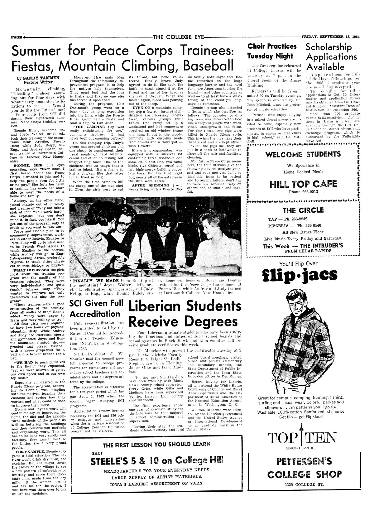 | Summer for Peace Corps trainees: fiestas, mountain climbing, baseball | Four women complete eight week training course; photo. |