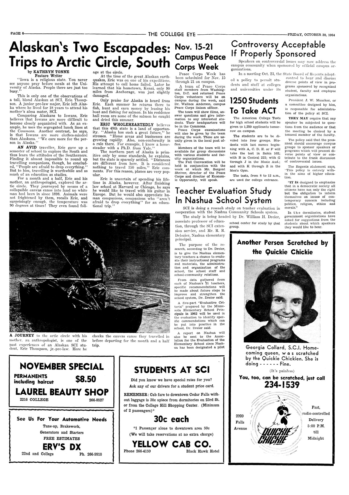 | Alaskan's two escapades: trips to Arctic Circle, south | Profile of Eric Thompson, who is from Alaska; photo. |