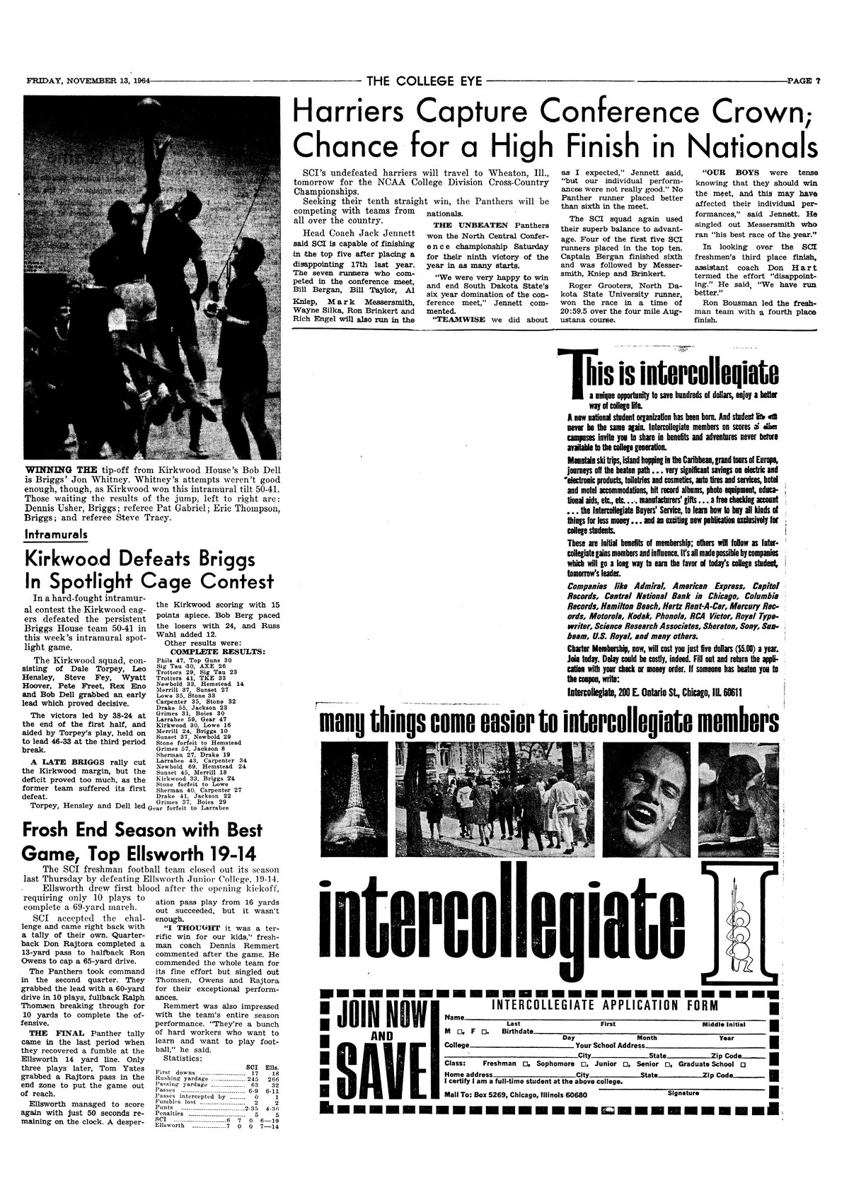 | Kirkwood defeats Briggs in spotlight cage contest | Score is 50-41 in intramural basketball; photo. |
