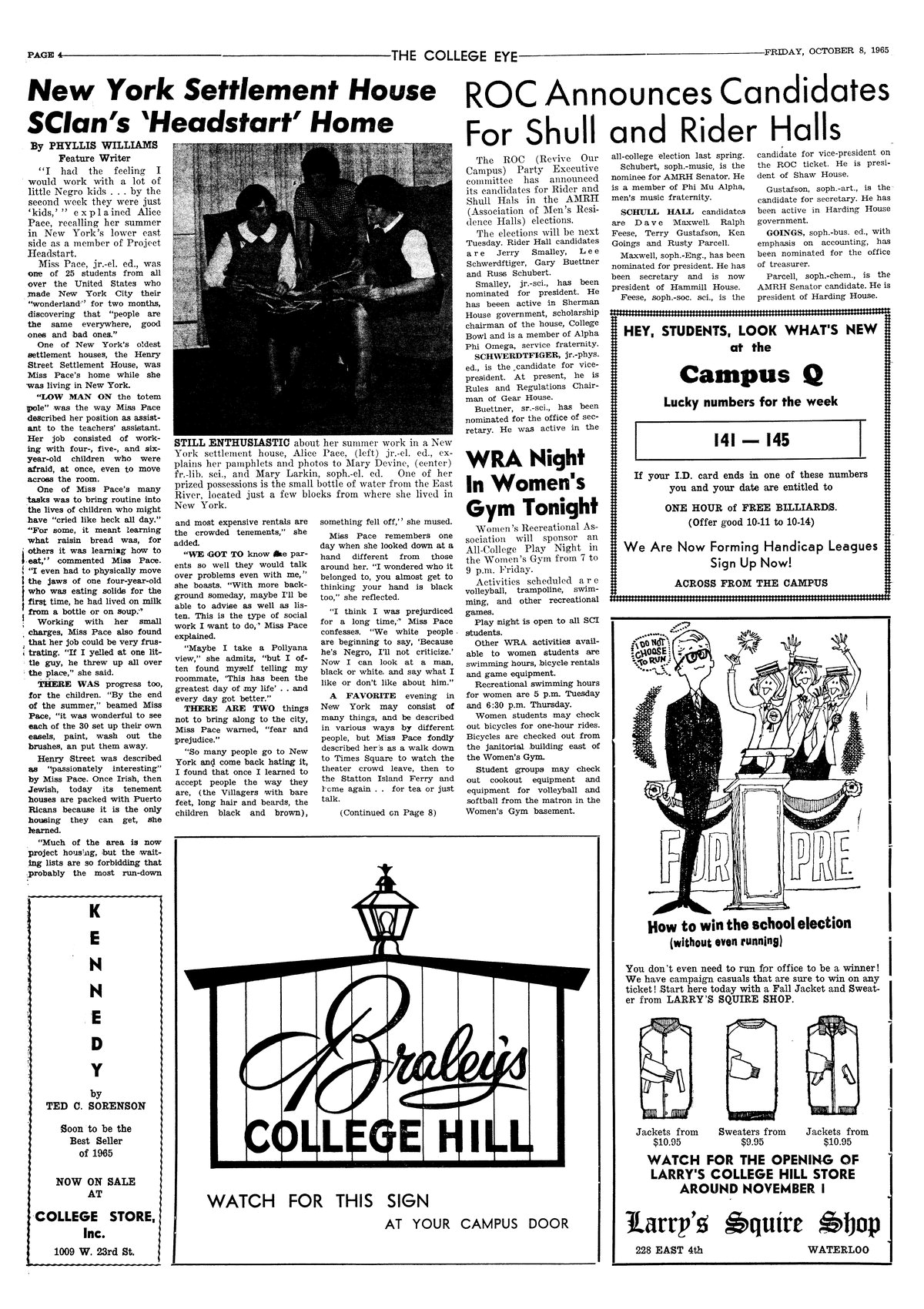 | New York settlement house SCIan's 'Headstart' home | Alice Pace talks about her summer work; photo. |