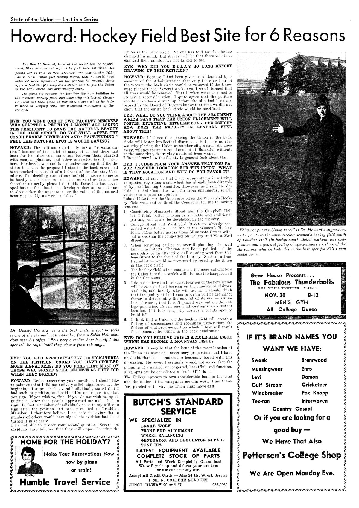 | State of the Union--last in a series: Howard: Hockey field best site for 6 reasons | Professor Howard outlines his reasons for not building on the Back Circle; photo. |