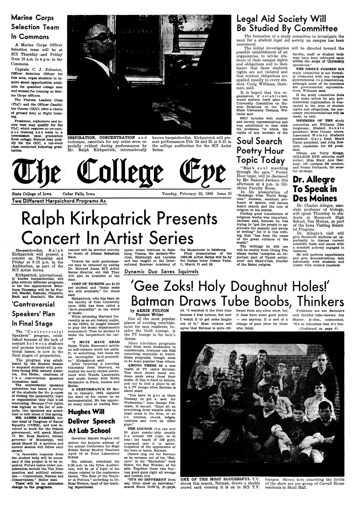 Dynamic duo saves squirrels: 'Gee Zoks! Holy doughnut holes!' Batman draws tube boobs, thinkers Students enjoy Batman program.