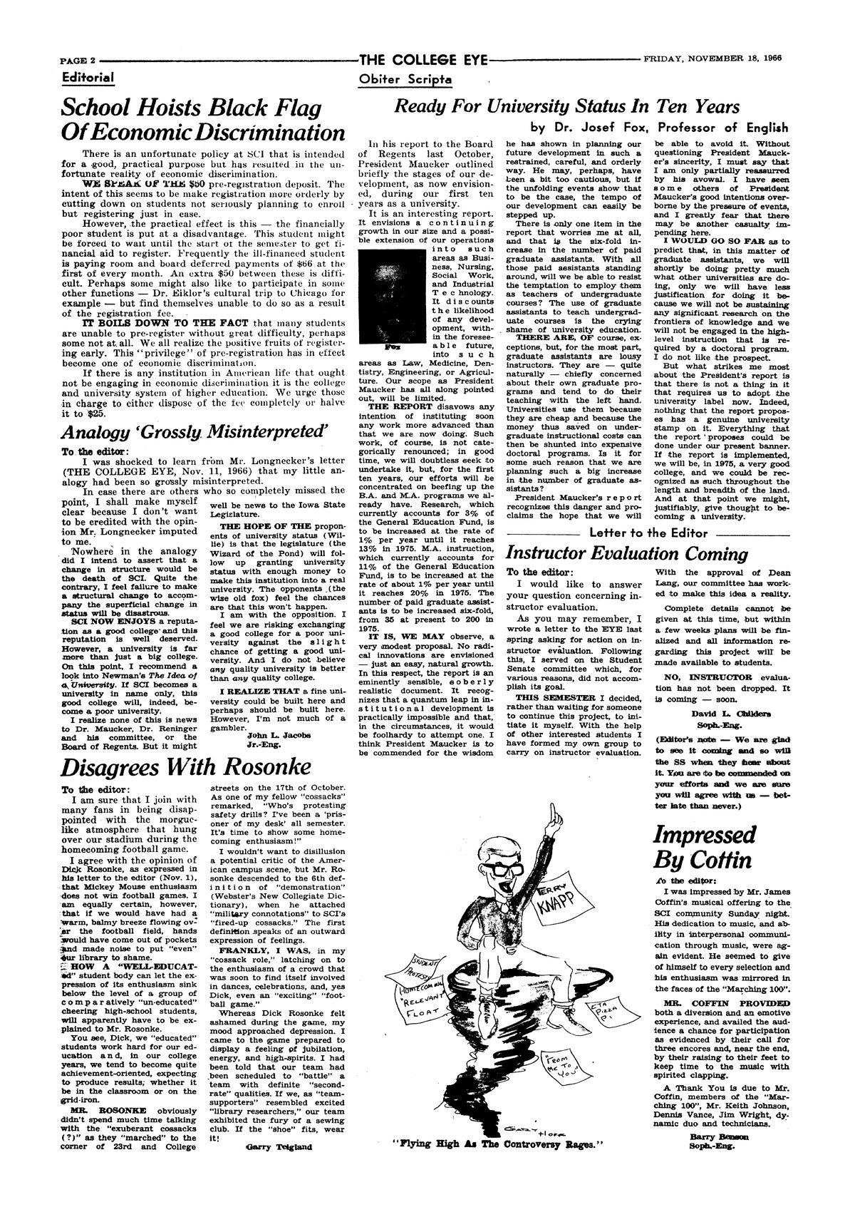 | Disagrees with Rosonke | Defends students lack of spirit at recent football game. |