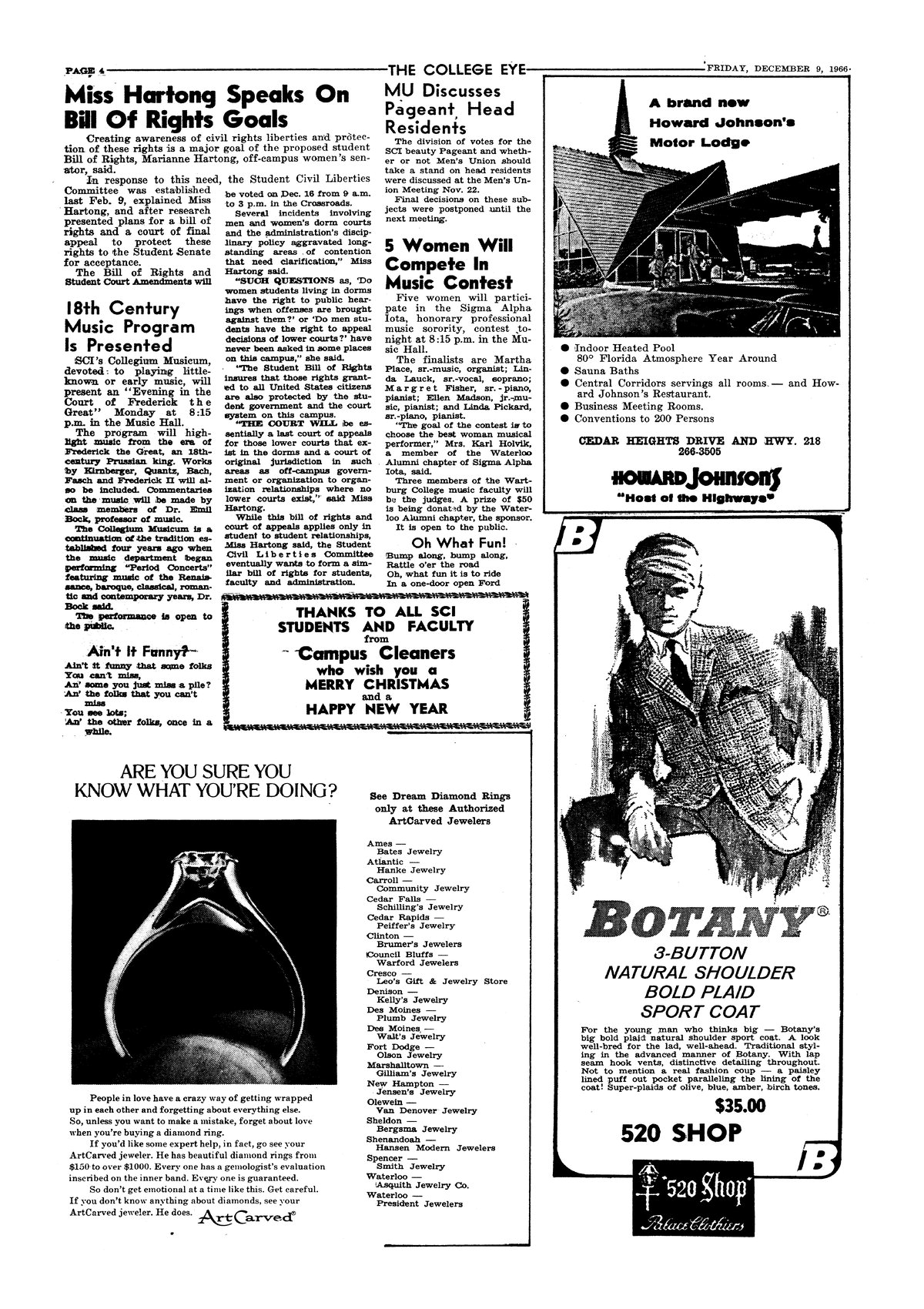 Miss Hartong speaks on bill of rights goals Believes bill would protect civil liberties.