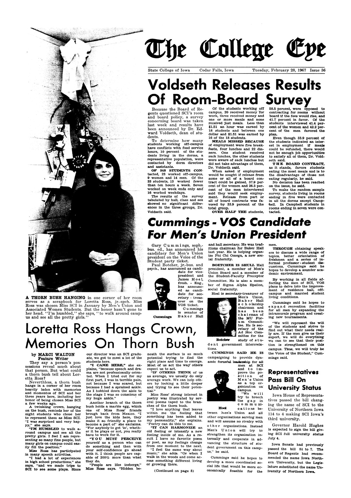 Cummings--VOS candidate for Men's Union president Candidates state their views; photo.