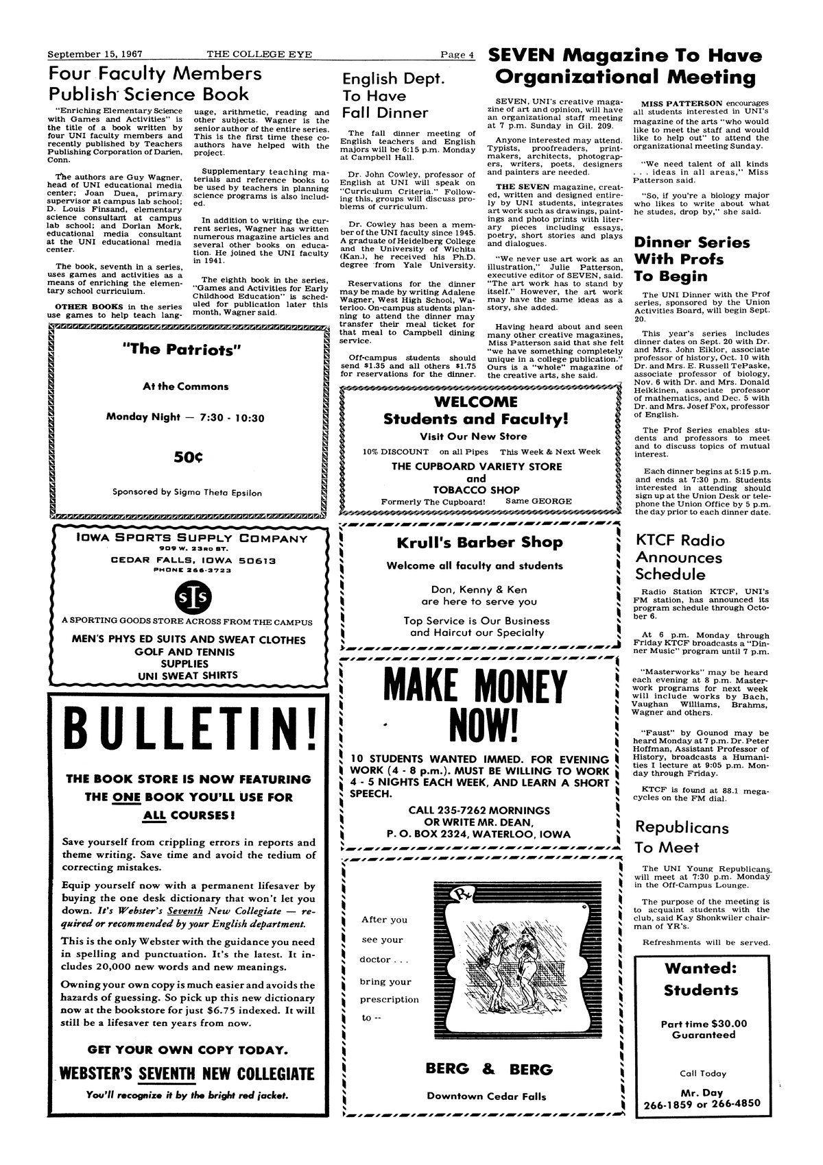 | KTCF radio announces schedule | Includes Humanities lecture. |