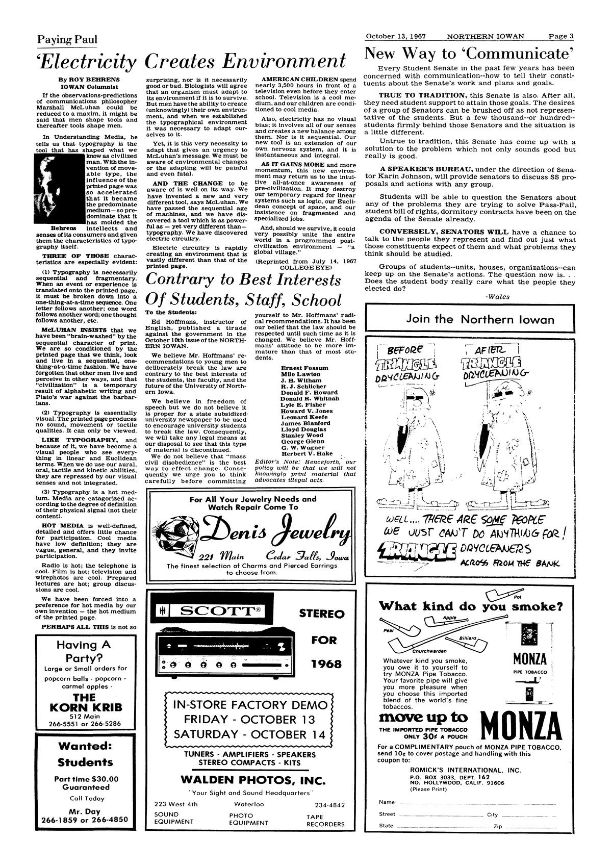 | Contrary to best interests of students, staff, school | Believe that Hoffmans letter on draft advised young men to break law; urges Northern Iowan not to publish similar material. |