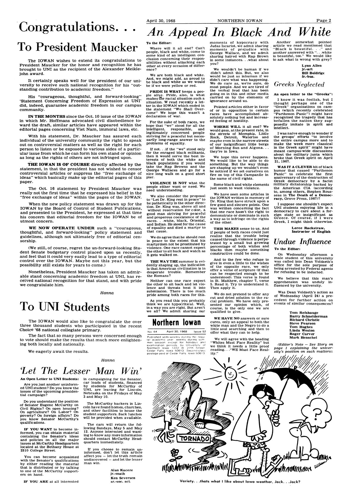 | Congratulations . . . To President Maucker . . . To UNI students | Congratulates President Maucker on winning AAUP award. |