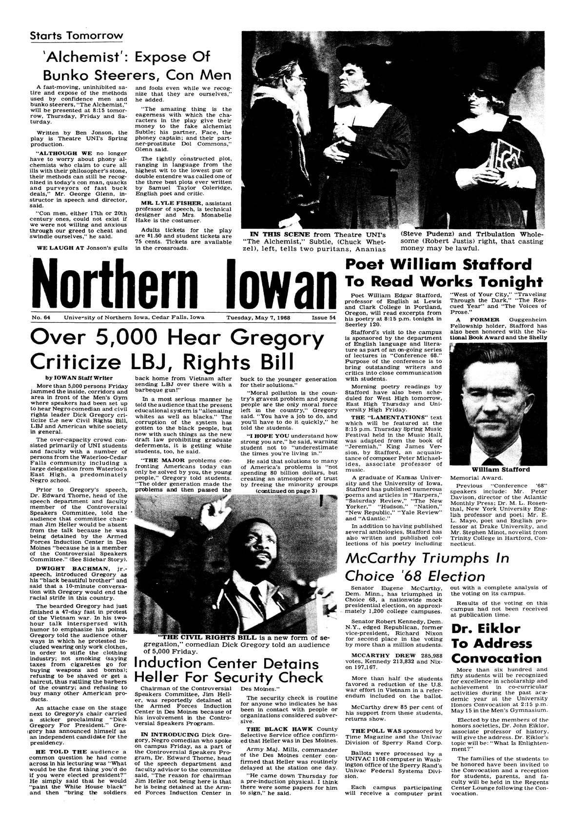 | Poet William Stafford to read works tonight | Will read poetry as part of Conference 68 program; biographical profile; photo. |